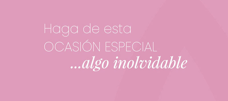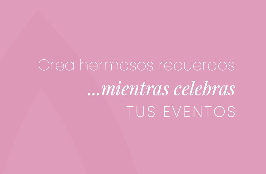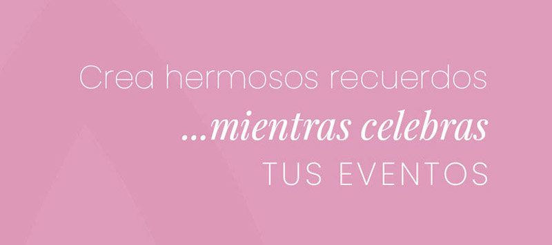 Bodas • XV años • Cumpleaños • Aniversarios • Graduaciones • Bautizos • Primera comunión •  Revelación de género • Baby Shower • Fiestas temáticas • Pedidas de matrimonio • Fiesta de fin de año • Posadas